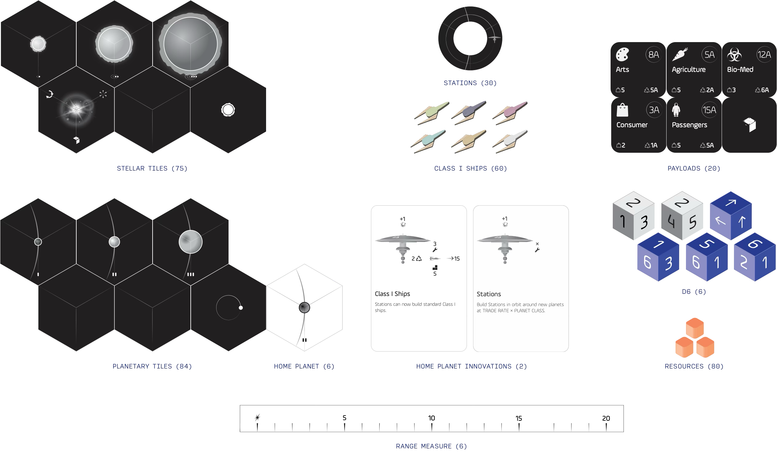 Star Carriers can be expanded with extensions that add new tiles, PAYLOADS, SHIPS, GATES, STATIONS, INNOVATIONS, and DISRUPTIONS.